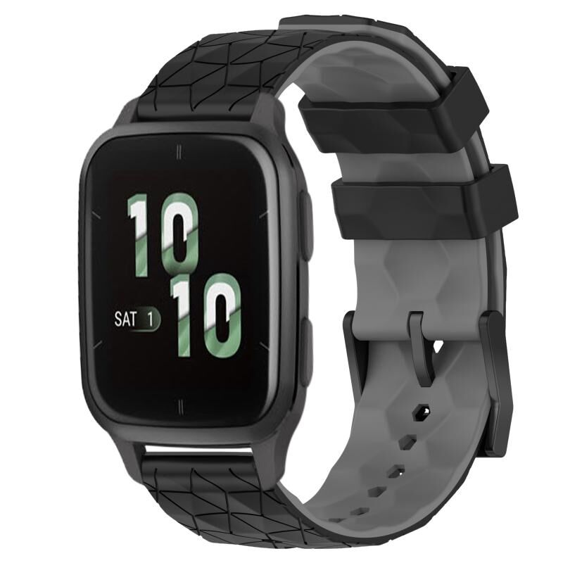 Για Garmin Forerunner Sq2 20mm ποδοσφαιρικό μοτίβο δύο χρωμάτων σιλικόνης ρολόι μπάντα (μαύρο + γκρι)