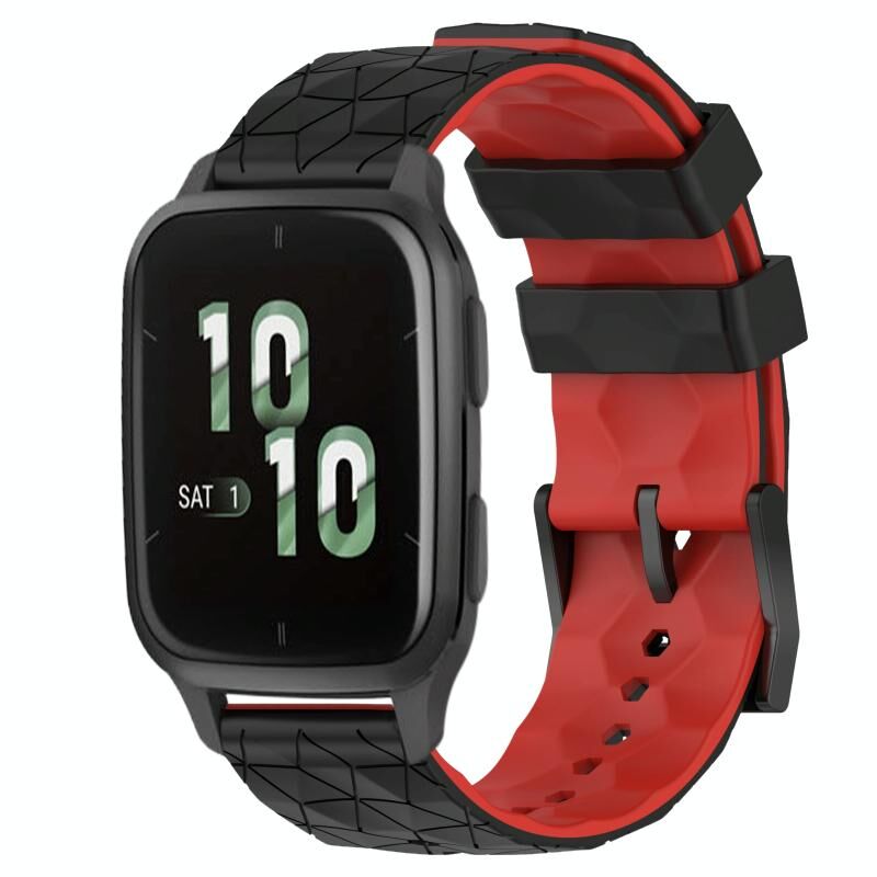 Για Garmin Forerunner Sq2 20mm ποδοσφαιρικό μοτίβο δύο χρωμάτων σιλικόνης ρολόι μπάντα (μαύρο + κόκκινο)