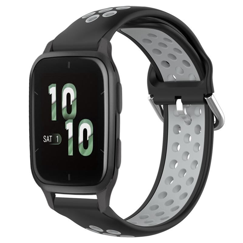 Για Garmin Forerunner Sq2 20mm διάτρητο διαπνέον αθλητικό λουράκι σιλικόνης (μαύρο + γκρι)