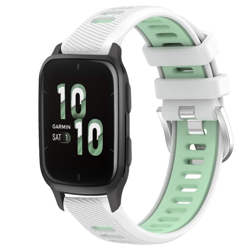 Για Garmin Forerunner Sq2 20mm Αθλητισμός Δύο χρώματα χάλυβα πόρπη σιλικόνης ρολόι μπάντα (λευκό + Teal)