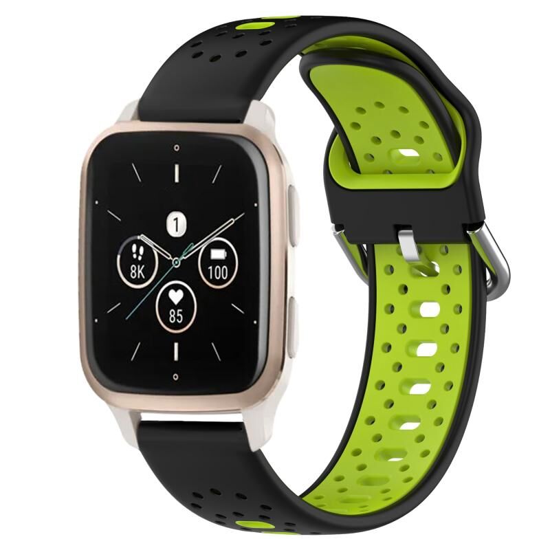Για Garmin Forerunner Sq2 Music 20mm αναπνεύσιμο σιλικόνης δύο χρωμάτων ζώνη ρολογιού σιλικόνης (μαύρο + πράσινο χρώμα)