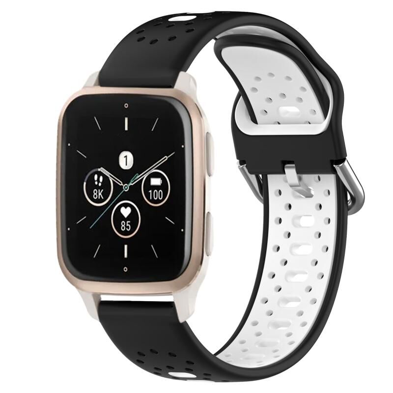 Για Garmin Forerunner Sq2 Music 20mm αναπνεύσιμο σιλικόνης δύο χρωμάτων ζώνη ρολογιού σιλικόνης (Μαύρο + Λευκό)