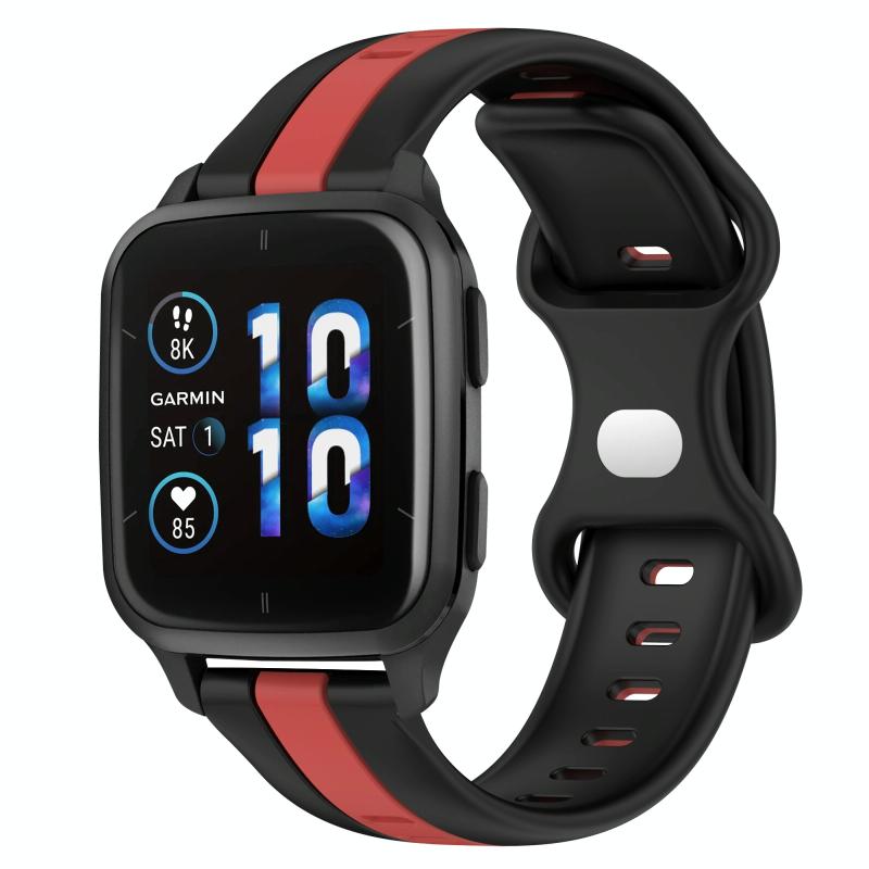 For Garmin Forerunner Sq2 Music 20mm Butterfly Buckle Two-Color Silicone Watch Band(Black+Red)
