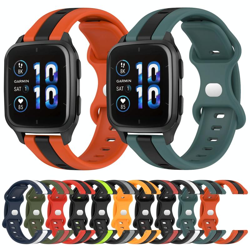 For Garmin Forerunner Sq2 Music 20mm Butterfly Buckle Two-Color Silicone Watch Band(Orange+Black)