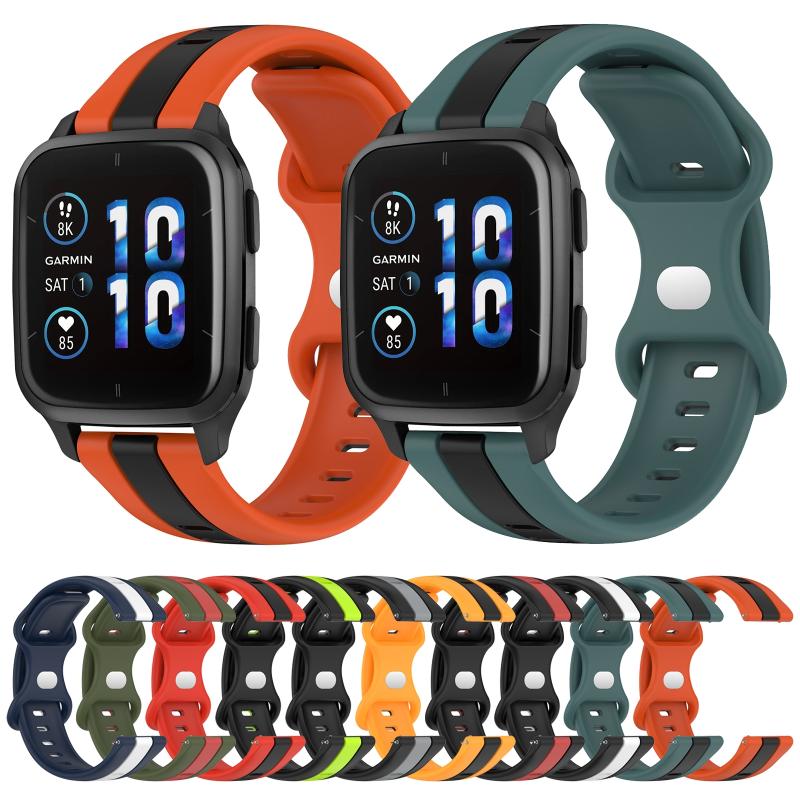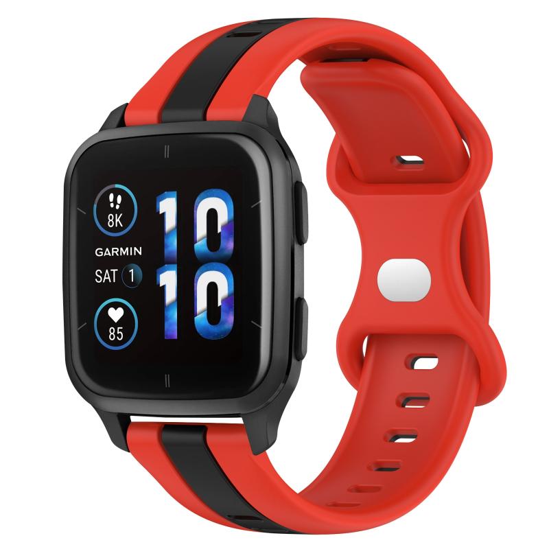 For Garmin Forerunner Sq2 Music 20mm Butterfly Buckle Two-Color Silicone Watch Band(Red+Black)