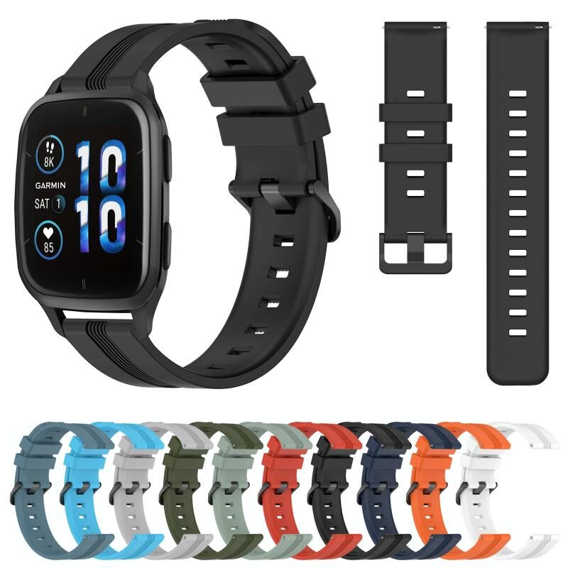 Για Garmin Forerunner Sq2 Music 20mm Concave ριγέ ζώνη ρολογιού Slicone (πράσινο στρατού)