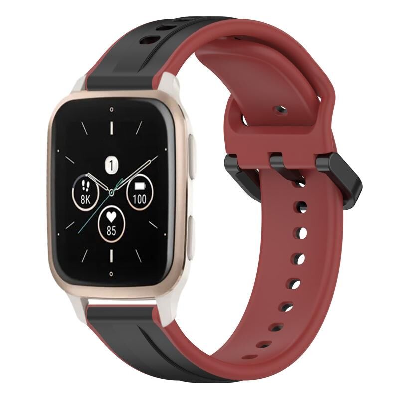 Για Garmin Forerunner Sq2 Music 20mm κυρτό βρόχο σιλικόνης δύο χρωμάτων (μαύρο + κόκκινο)