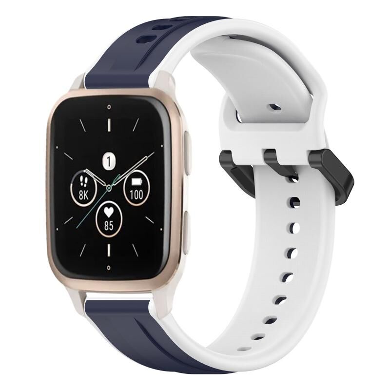 Για Garmin Forerunner Sq2 Music 20mm κυρτό βρόχο δύο χρωμάτων σιλικόνης ρολόι μπάντα (Midnight Blue + Λευκό)