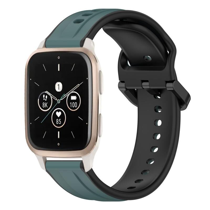 For Garmin Forerunner Sq2 Music 20mm Convex Loop Two-Color Silicone Watch Band(Olive Green + Black)