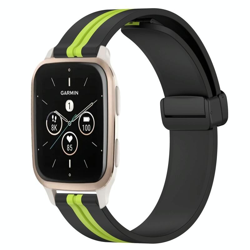 Για Garmin Forerunner Sq2 Music 20mm Πτυσσόμενο μαγνητικό κούμπωμα ζώνη ρολογιού σιλικόνης (Μαύρο+Lime Green)
