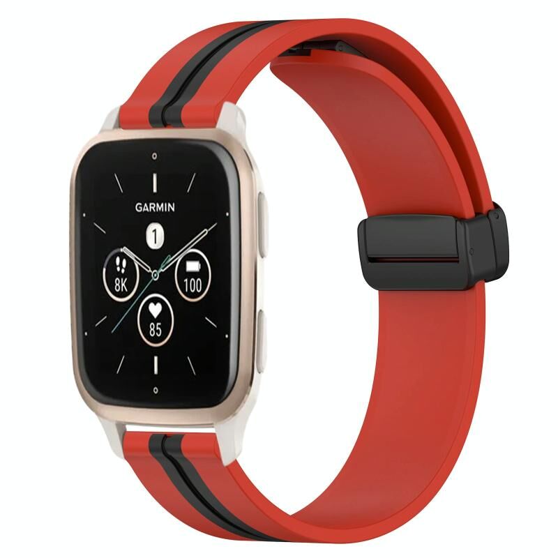 Για Garmin Forerunner Sq2 Music 20mm Πτυσσόμενο μαγνητικό κούμπωμα ζώνη ρολογιού σιλικόνης (κόκκινο+μαύρο)