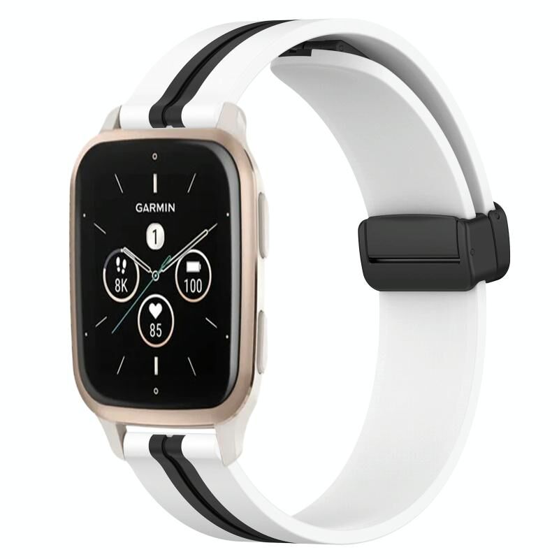 Για Garmin Forerunner Sq2 Music 20mm Πτυσσόμενο μαγνητικό κούμπωμα ζώνη ρολογιού σιλικόνης (Λευκό+Μαύρο)