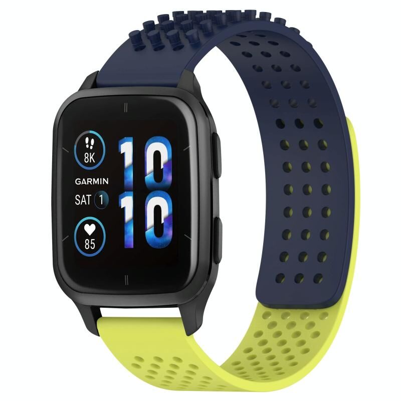 Για το Garmin Forerunner Sq2 Music 20mm οπές αναπνεύσιμο 3D Dots σιλικόνης ρολόι μπάντα ρολογιού (Midnight Blue + Lime Green)