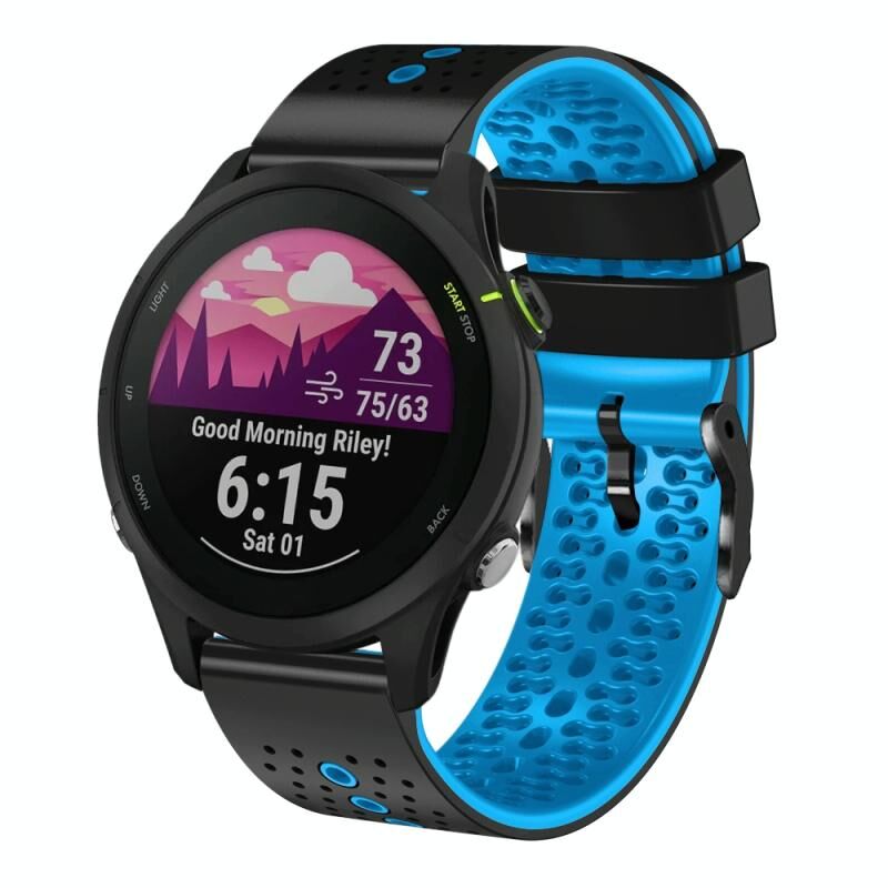 Για το Garmin Forerunner255 22mm διάτρητη ζώνη ρολογιού σιλικόνης δύο χρωμάτων (μαύρο+μπλε)