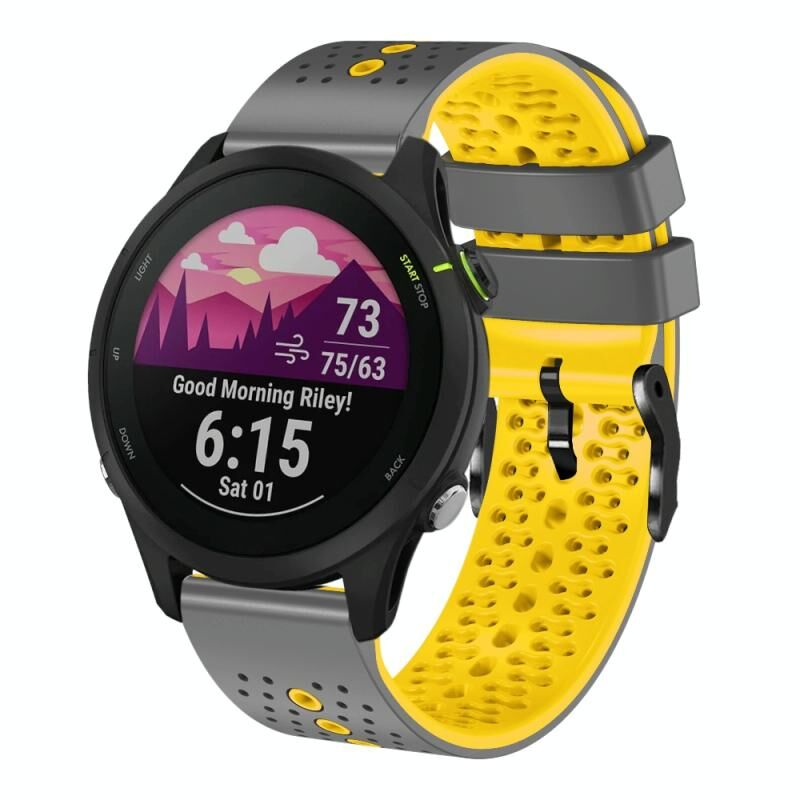 Για το Garmin Forerunner255 22mm διάτρητη ζώνη ρολογιού σιλικόνης δύο χρωμάτων (γκρι+κίτρινο)