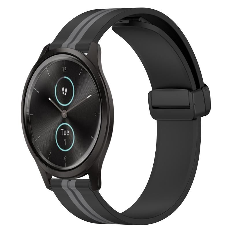 Για Garmin Garminmove Style 20mm Πτυσσόμενο μαγνητικό κούμπωμα ζώνη ρολογιού σιλικόνης (Μαύρο+Γκρι)