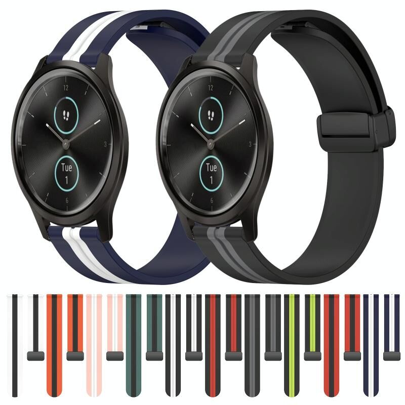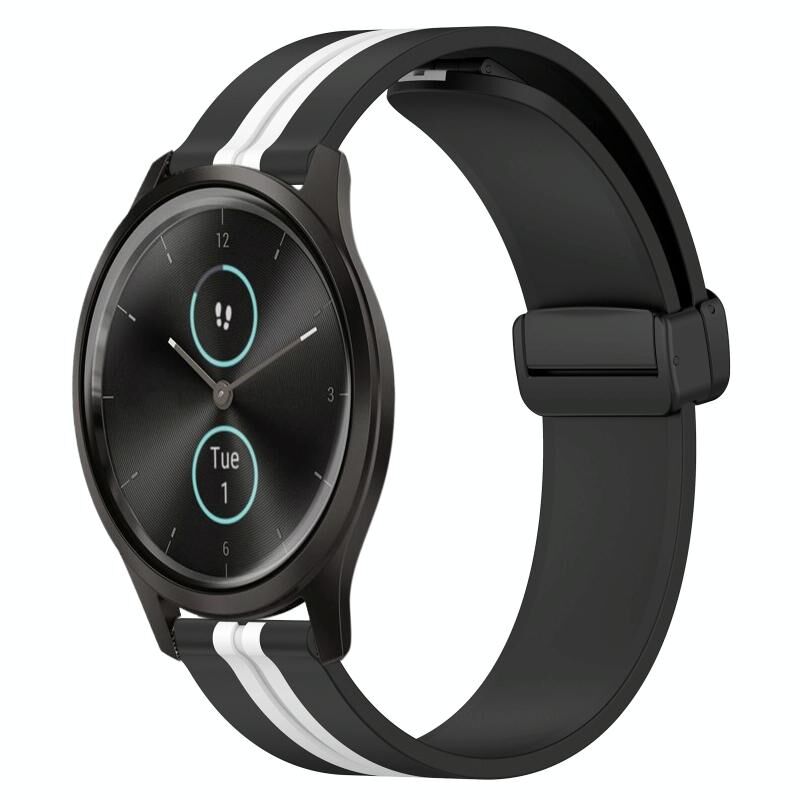 Για Garmin Garminmove Style 20mm Πτυσσόμενο μαγνητικό κούμπωμα ζώνη ρολογιού σιλικόνης (μαύρο+λευκό)