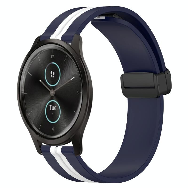 Για Garmin Garminmove Style 20 χιλιοστά πτυσσόμενο μαγνητικό κούμπωμα ζώνη σιλικόνης ρολόι (Midnight Blue + Λευκό)