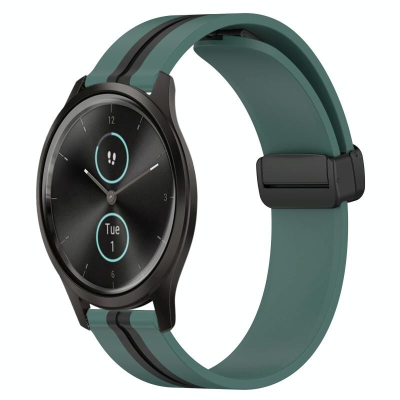 Για Garmin Garminmove Style 20mm Πτυσσόμενο μαγνητικό κούμπωμα ζώνη ρολογιού σιλικόνης (Olive Green + Μαύρο)