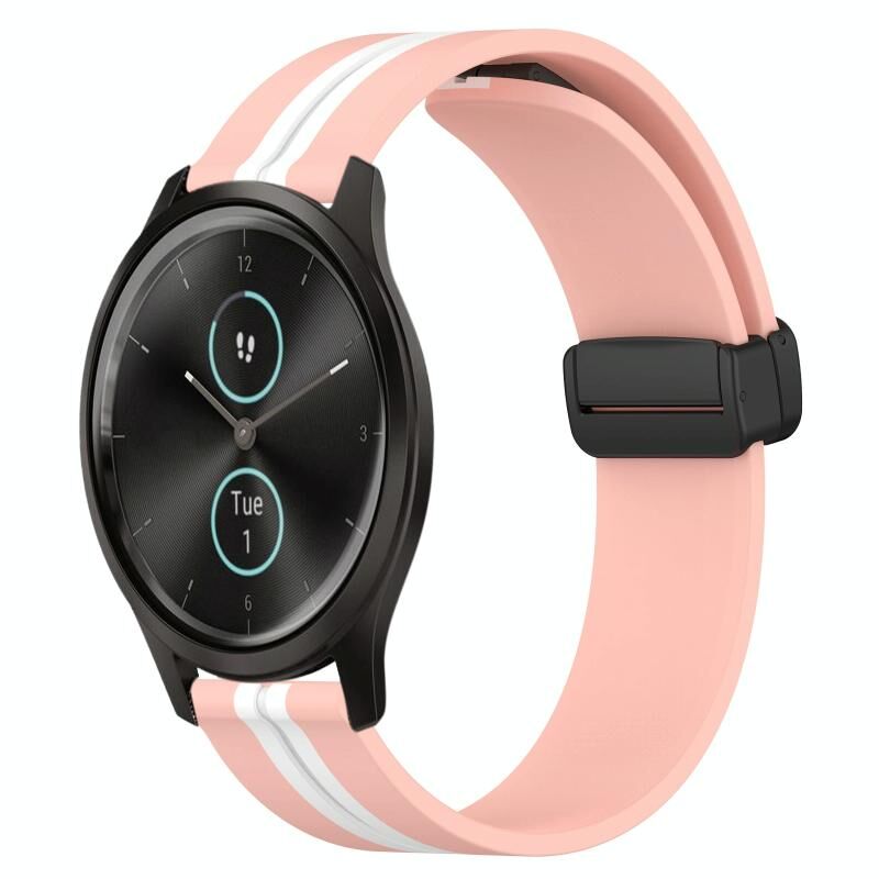 Για Garmin Garminmove Style 20 χιλιοστά πτυσσόμενο μαγνητικό κούμπωμα ζώνη σιλικόνης ρολόι (ροζ + λευκό)
