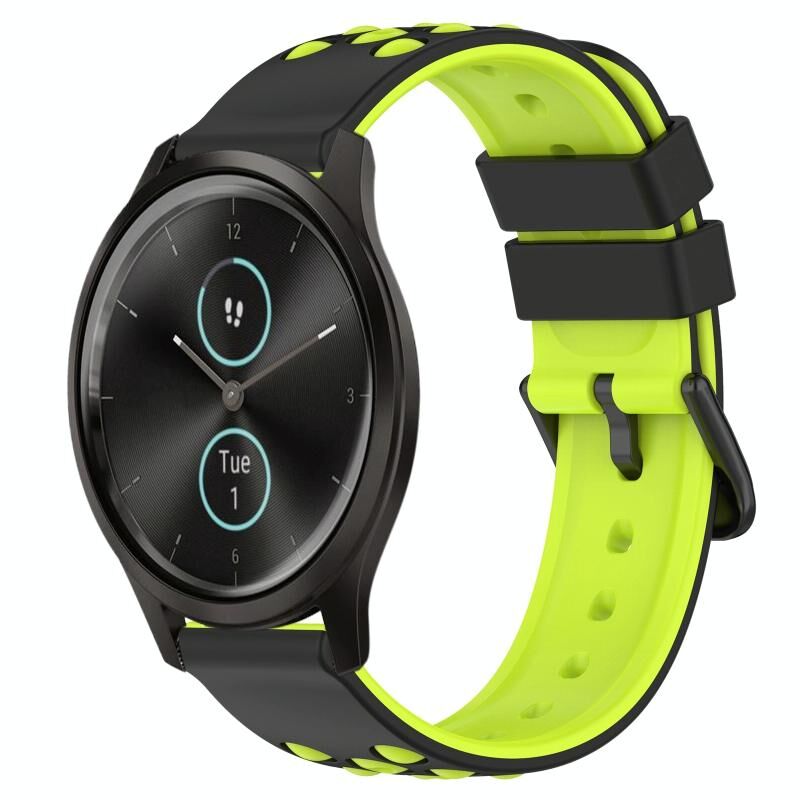 Για το Garmin Garminmove Style 20 χιλιοστά δύο χρωμάτων πορώδες λουράκι σιλικόνης ρολόι (μαύρο + πράσινο χρώμα)