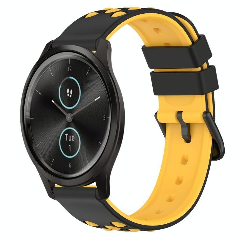 Για το Garmin Garminmove Style 20 χιλιοστά δύο χρωμάτων πορώδες λουράκι σιλικόνης ρολόι (μαύρο + κίτρινο)