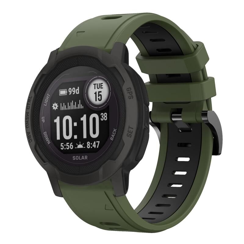 Για το Garmin Instinct 2 22 χιλιοστά δύο χρωμάτων αθλητική ζώνη σιλικόνης ρολόι (πράσινο στρατού + μαύρο)