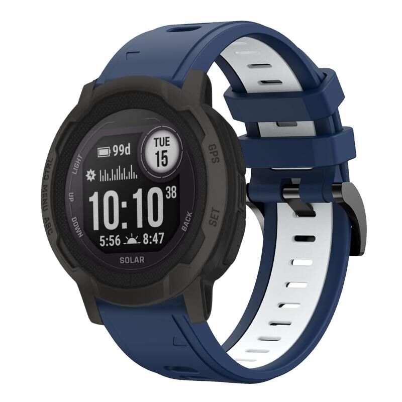 Για το Garmin Instinct 2 22 χιλιοστά δύο χρωμάτων Αθλητικό λουράκι σιλικόνης (Μπλε μεσάνυχτα + Λευκό)