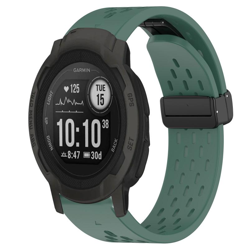 Λουράκι Garmin Instinct 2 22mm Σιλικόνης με Αγκράφα Διπλώματος (Σκούρο Πράσινο)