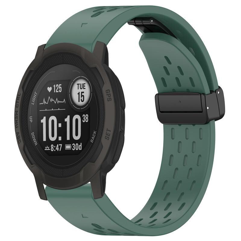 Για Garmin Instinct 2 / Instinct 22mm οπές μαγνητική πτυσσόμενη πόρπη σιλικόνης ρολόι μπάντα ρολογιού (σκούρο πράσινο)