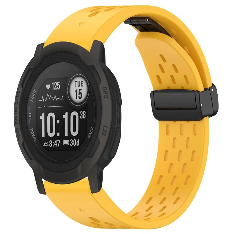 Για Garmin Instinct 2 / Instinct 22mm οπές μαγνητική πτυσσόμενη πόρπη σιλικόνης ρολόι μπάντα ρολογιού (κίτρινο)