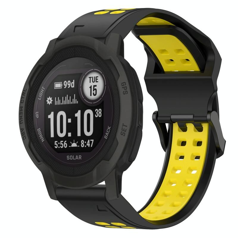 Ανταλλακτικό λουράκι σιλικόνης 22mm διπλού χρώματος με ανάποδη αγκράφα για Garmin Instinct 2 Solar (Μαύρο+Κίτρινο)