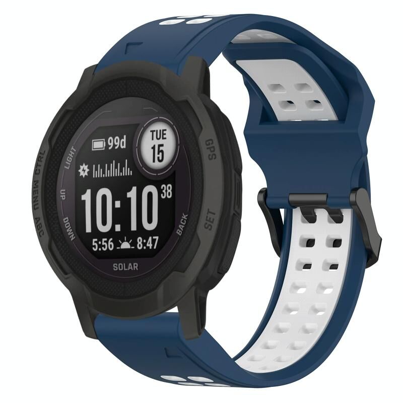 For Garmin Instinct 2 Solar Two Color Reverse Buckle 22mm Silicone Watch Band(Blue+White)