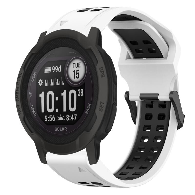 Ανταλλακτικό λουράκι σιλικόνης 22mm διπλού χρώματος με ανάποδη αγκράφα για Garmin Instinct 2 Solar (Λευκό+Μαύρο)