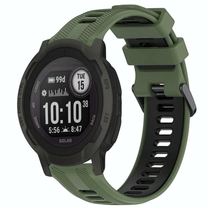 Για το Garmin Instinct 2 Αθλητικό λουράκι ρολογιού σιλικόνης δύο χρωμάτων (πράσινο στρατού+μαύρο)
