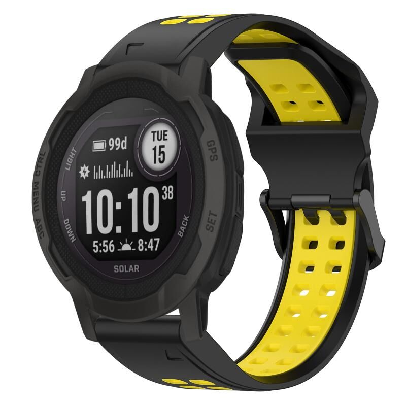 Ανταλλακτικό λουράκι σιλικόνης 22mm διπλού χρώματος με ανάποδη αγκράφα για Garmin Instinct 2 (Μαύρο+Κίτρινο)