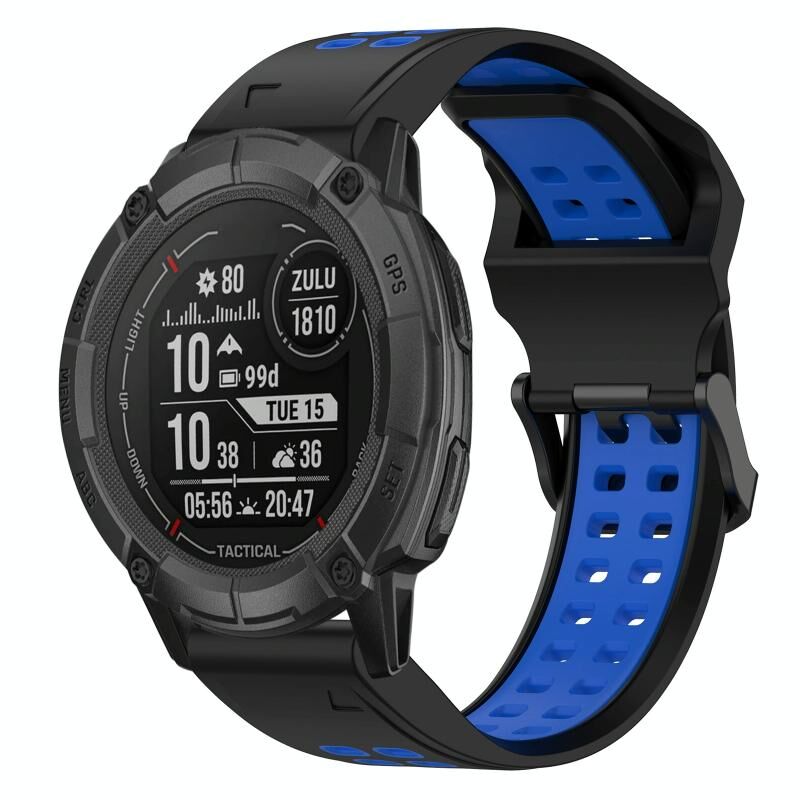 Ανταλλακτικό λουράκι σιλικόνης 26mm διπλού χρώματος (μαύρο+μπλε) με ανάποδη αγκράφα για Garmin Instinct 2X Solar