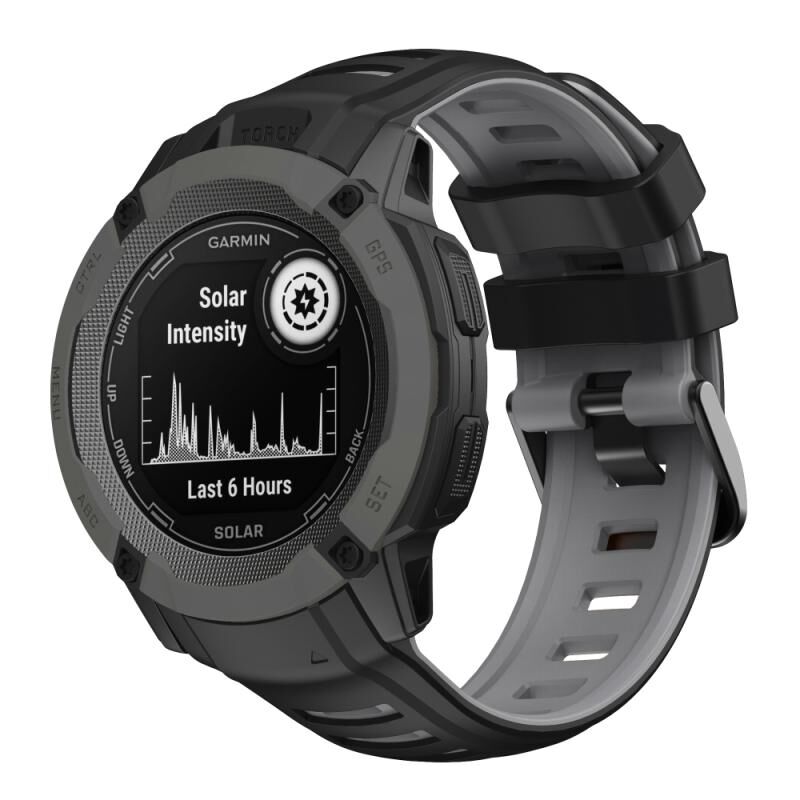 Για το Garmin Instinct 2X Δύο χρώματα σιλικόνης ρολόι μπάντα (μαύρο γκρι)