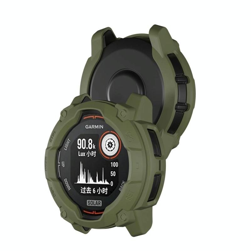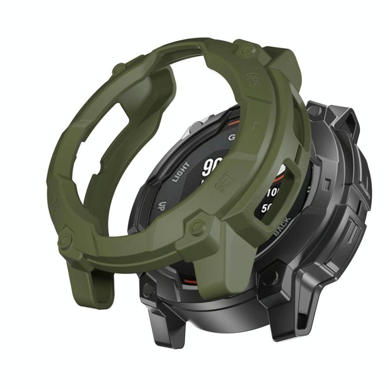 For Garmin Instinct 3 Solar 45mm Half Coverage Hollow TPU Armor Watch Protective Case(Army Green)