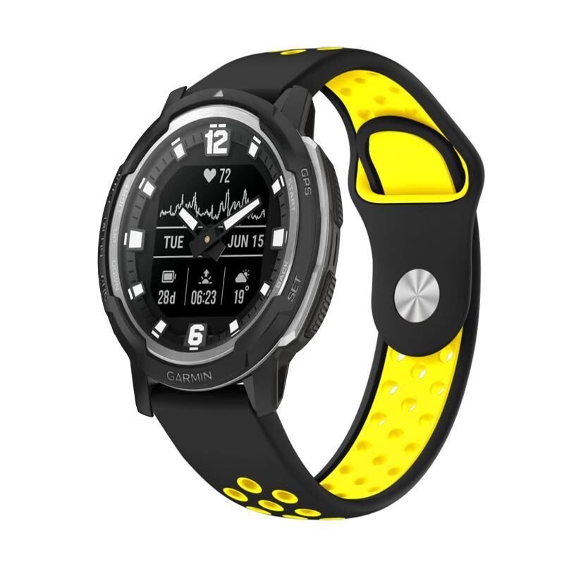 Για το Garmin Instinct Crossover 22mm Αθλητικό αναπνεύσιμο λουράκι σιλικόνης (μαύρο+κίτρινο)