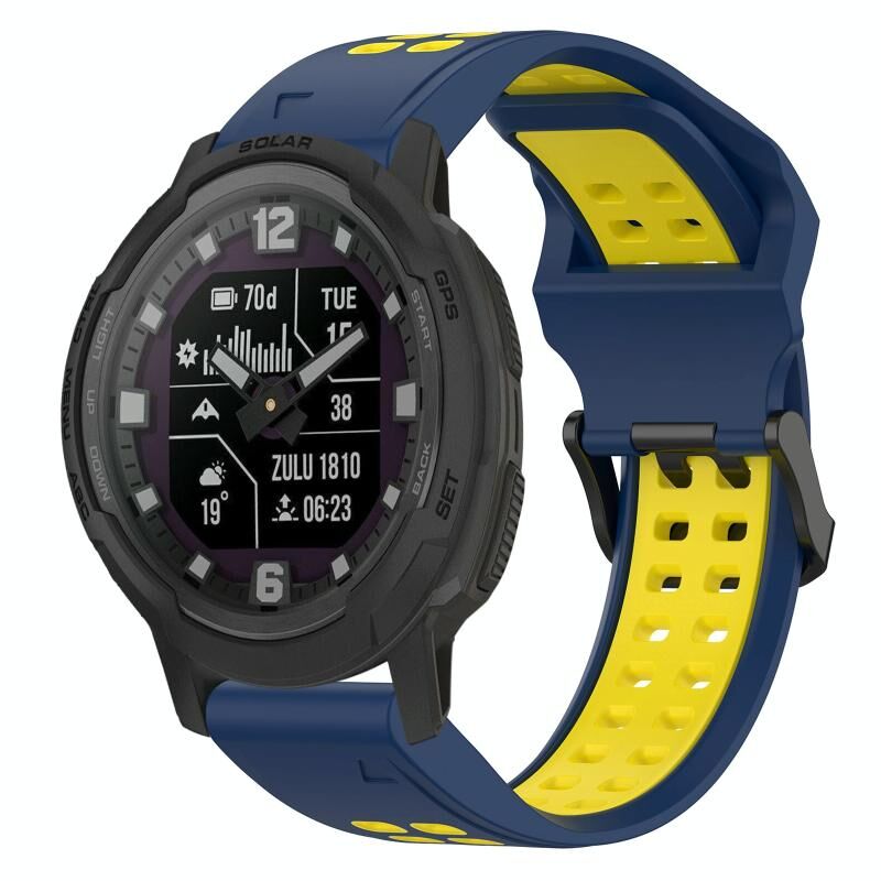 Για Garmin Instinct Crossover Solar Δίχρωμο Αντίστροφο Κούμπωμα 22mm Ζώνη Ρολογιού Σιλικόνης (Μπλε+Κίτρινο)