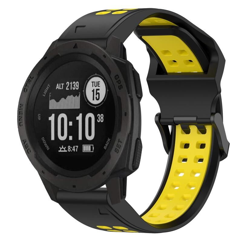 Για Garmin Instinct 2, Αντίστροφη Χρωματική Αγκράφα, Ζώνη Ρολογιού Σιλικόνης 22mm (Μαύρο+Κίτρινο)