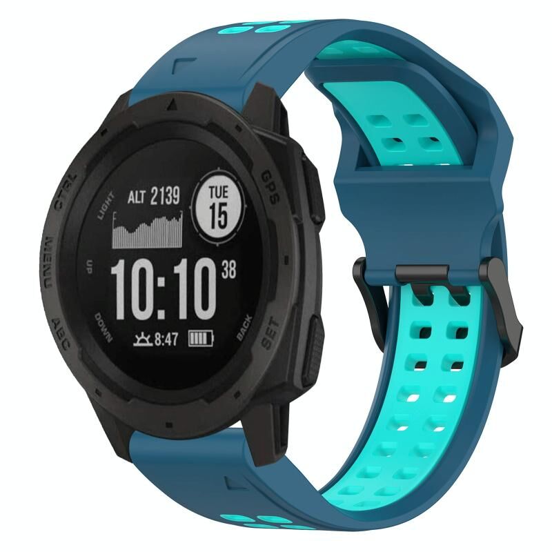 Για Garmin Instinct 2, Αντίστροφο Κούμπωμα, Ζώνη Ρολογιού Σιλικόνης 22mm (Μπλε+Πετρόλ)