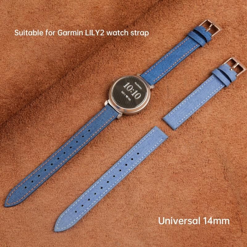 For Garmin Lily 2 14mm Linen Fabric Leather Watch Band(Black)