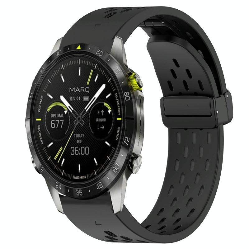 Λουράκι Garmin MARQ Athlete Gen 2 22mm, Σιλικόνης με Αγκράφα Διπλώματος (Μαύρο)