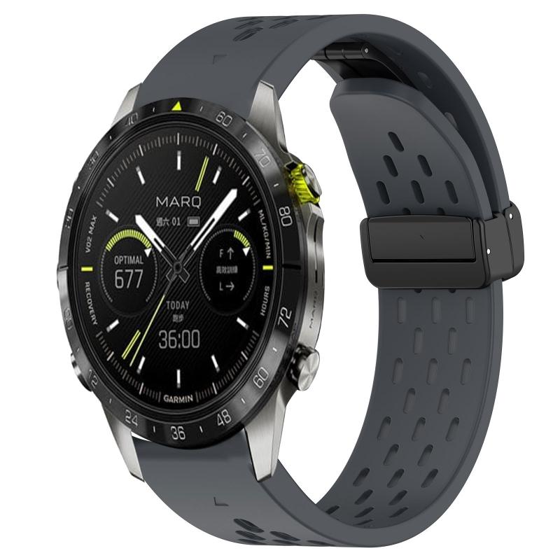 Λουράκι Garmin MARQ Athlete Gen 2 22mm, Σιλικόνης με Αγκράφα Διπλώματος (Σκούρο Γκρι)