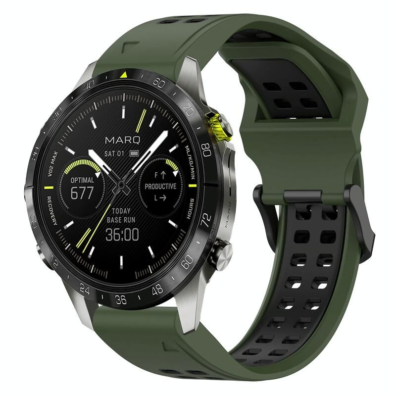 Ανταλλακτικό λουράκι σιλικόνης 22mm διπλού χρώματος με ανάποδη αγκράφα για Garmin MARQ Athlete (2ης γενιάς) (Χακί+Μαύρο)