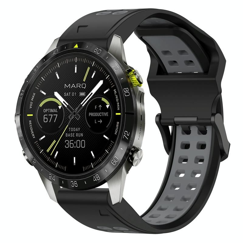 Ανταλλακτικό λουράκι σιλικόνης 22mm δύο χρωμάτων (μαύρο+γκρι) με ανάποδη αγκράφα για Garmin MARQ Athlete (2ης γενιάς)
