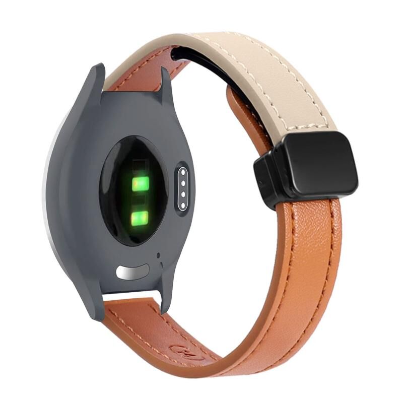 Για το Garmin Move 3S 18mm λεπτό μαγνητικό λουράκι μικροϊνών δερμάτινο ρολόι (Aimaorange+Cream Apricot)