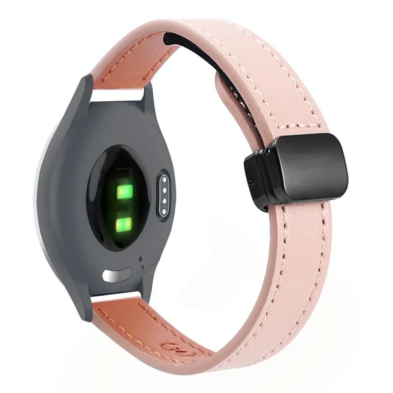 Για το Garmin Move 3S 18mm λεπτό μαγνητικό λουράκι από δέρμα μικροϊνών (ροζ σακούρα)